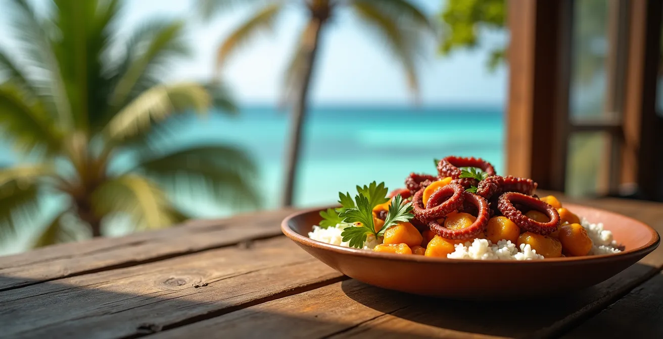 Et si la clé pour juger de l’excellence d’une table créole ne se trouvait pas dans son plat le plus populaire, mais dans son plus grand défi technique ? Oubliez les apparences. Le véritable test, le baromètre implacable de la maîtrise culinaire seychelloise, c’est le cari de zourite. Ce plat, en apparence modeste, est un champ de mines gastronomique. Sa réussite ne tient pas au hasard, mais à une compréhension quasi scientifique de la transformation des textures et de l’équilibre des saveurs. De la gestion biochimique du collagène du poulpe à la maîtrise de l’émulsion du lait de coco, chaque étape est un jugement.